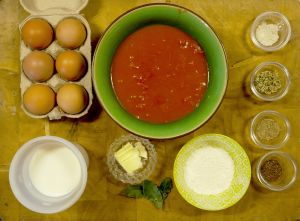 - Préparer la sauce tomate. Faire revenir l'oignon haché dans un peu d'huile. Ajouter l'ail coupé finement, les tomates pelées, épépinées et concassées et les aromates. Faire mijoter pendant 1 h 30 min si ce sont des tomates fraîches et 45 min pour des tomates en boite.